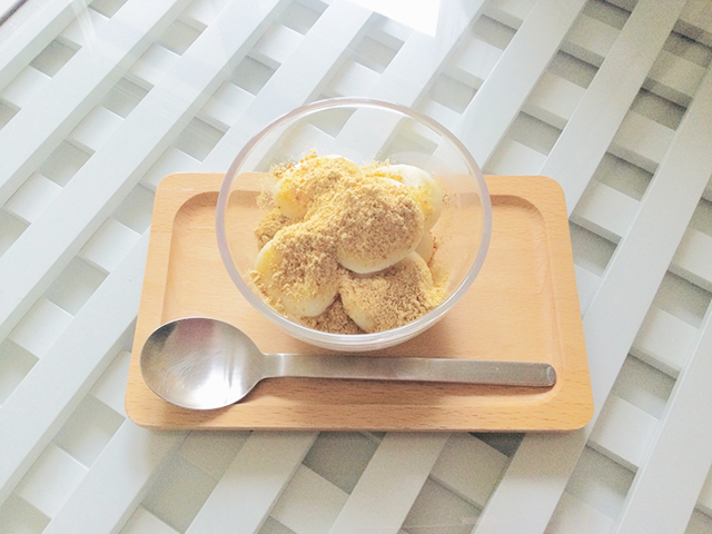 今回はココナッツシュガーで甘くしたきな粉を合わせました。