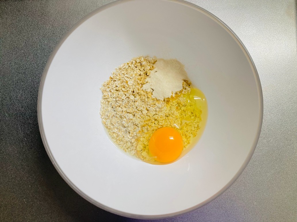 1. ボウルにオートミールと豆乳をいれて15分ほど置いてふやかします。